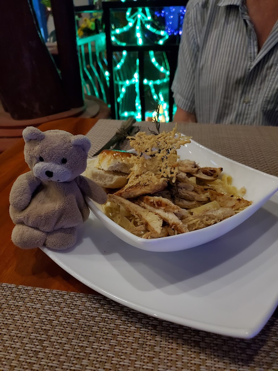 The Cheeseburger was very good as well as the Fettuccine Alfredo with Chicken. Nice setting up in the tree house that was decorated with colorful lights. Service was good as well.